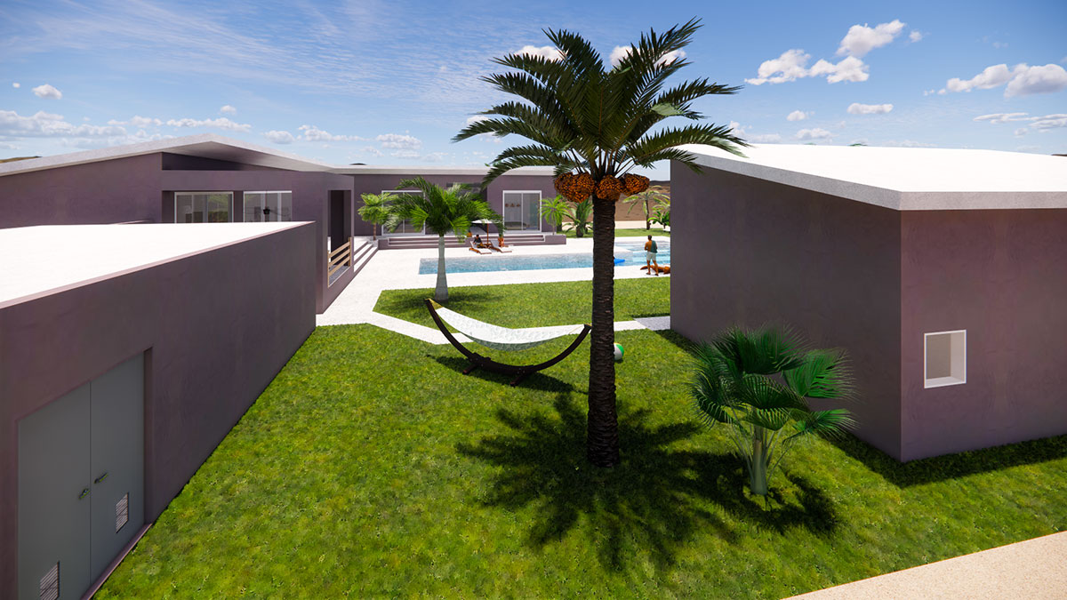 - 8 große eingeschossige Villen, umgeben von einer Mauer und untereinander durch Mauer oder Zaun getrennt